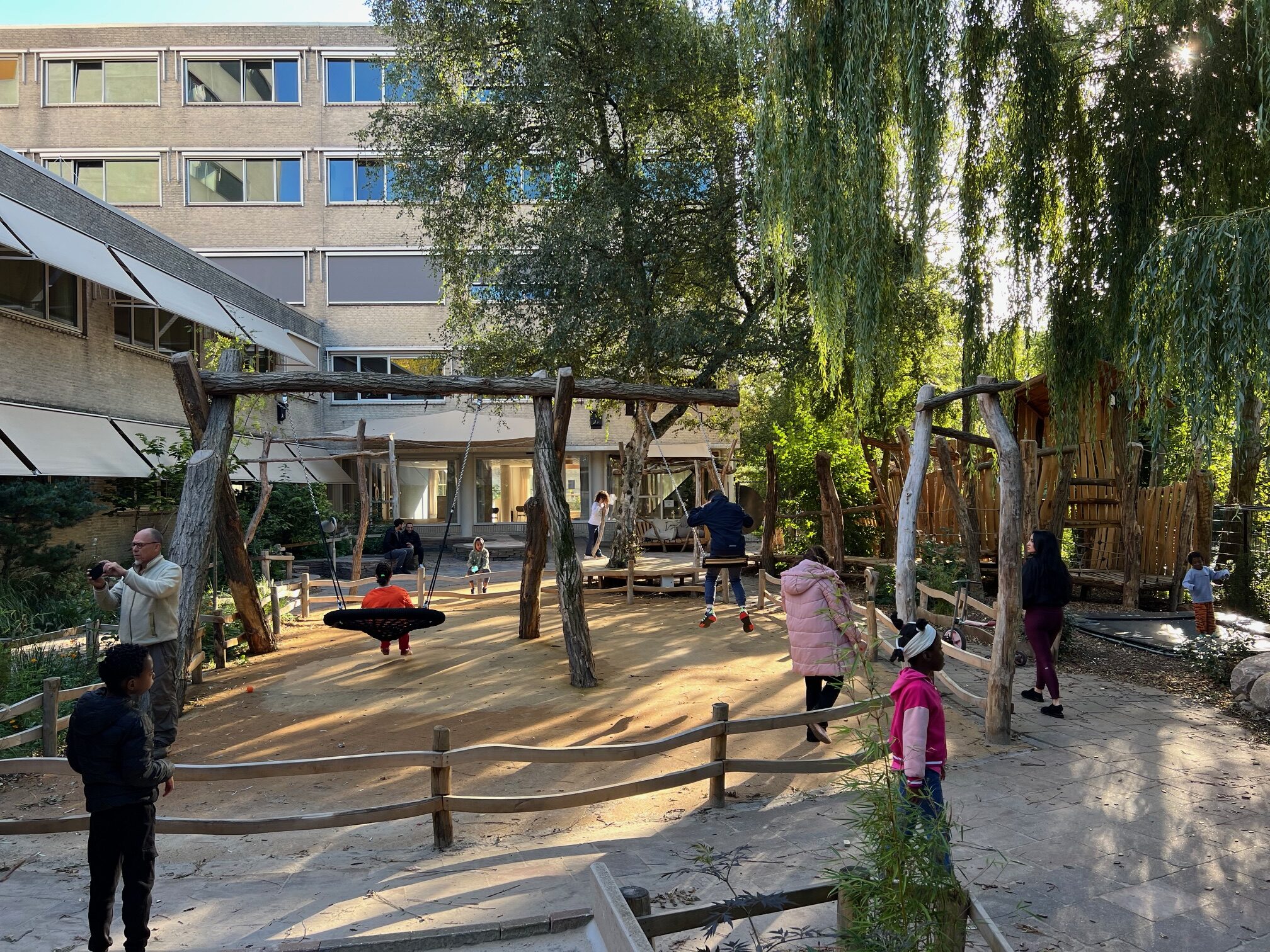 De Joristuin is een krachtig statement van inclusiviteit in het hart van de Zuidas. Het project is ontstaan vanuit gemeenschapskracht, met de door ouders opgerichte Stichting Jorisvrienden als initiatiefnemer. Volledig in lijn met de antroposofische Lievegoed-visie staat ‘samenzeggenschap’ centraal: het ontwerp kwam tot stand via nauwe samenspraak met ouders en begeleiders. Ieder kind kan hier meedoen dankzij het aangepaste ontwerp met rolstoeltoegankelijke speeltafels. De maatschappelijke betrokkenheid blijkt ook uit de fondsenwerving, waarbij ouders acties organiseren en (lokale) bedrijven en fondsen worden benaderd. De verbinding wordt concreet gemaakt door buren van de naastgelegen VVE proactief uit te nodigen de tuin te gebruiken, wat het isolement doorbreekt en de sociale cohesie in de wijk versterkt.